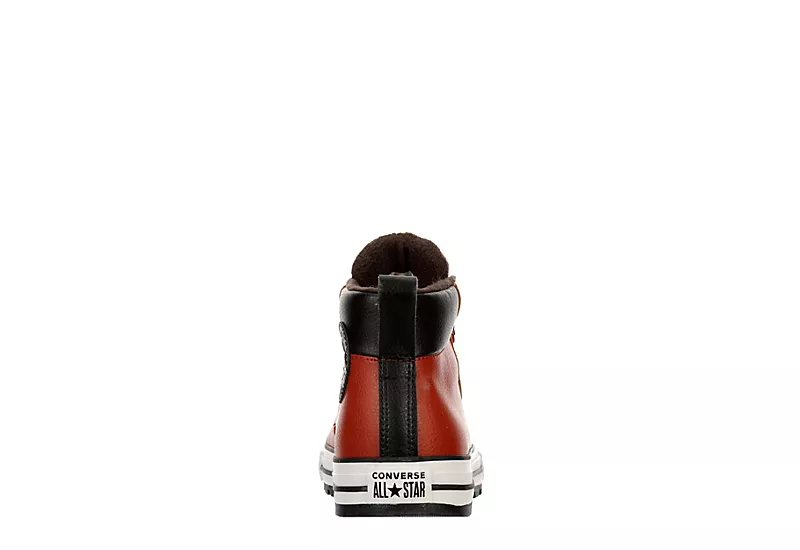Create an edgy look with the Converse Chuck Taylor All-Star Street Lugged men’s sneaker boot. This iconic design features a durable leather upper with lace-up closure for a secure fit and a padded collar & tongue for added comfort. The Ortholite insole supports and cushions your feet, while the rubber lug outsole provides exceptional traction and durability.Â