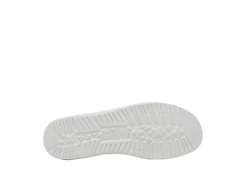 Relax into your passion with the HEYDUDE Wally Funk men’s slip-on sneaker. With a textile upper featuring a Flex & Fold technology and an oxford cloth lining for breathability, this sneaker is machine washable for easy maintenance. The removable Memory Foam insole and leather lining offer ergonomic comfort and cushioning while the ultralight EVA outsole sets you free to explore unfettered.
