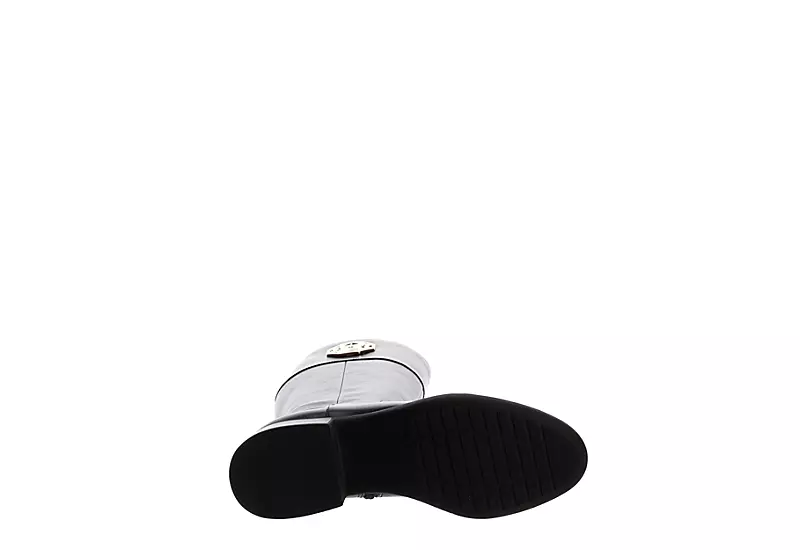 Look good and finish strong in the Michael by Michael Shannon Brielle women’s riding boot. With a faux leather upper featuring metallic ornamentation on the side, this inside zip boot has style for days. The lightly padded footbed soothes your foot while the low heel aids walking.