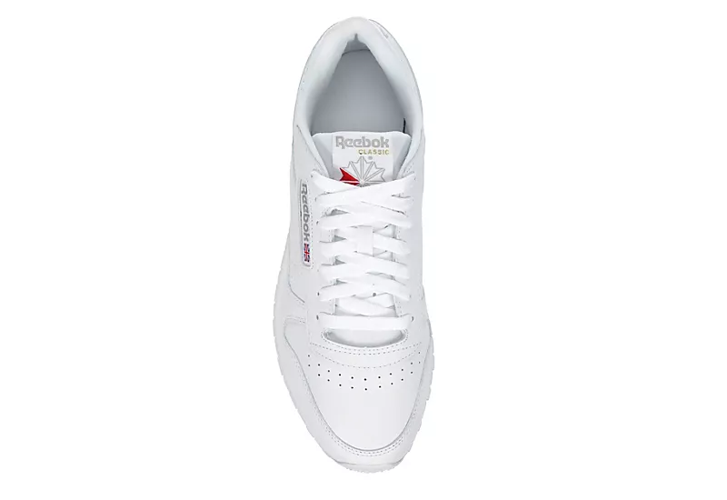 The Reebok Classic Leather men’s sneaker takes inspiration from the past. With a leather upper featuring authentic branding details and lace-up closure for a secure fit, this sneaker also has a padded collar & tongue for added comfort. A foam sockliner and EVA midsole support your feet, while the rubber outsole provides excellent traction.Â
