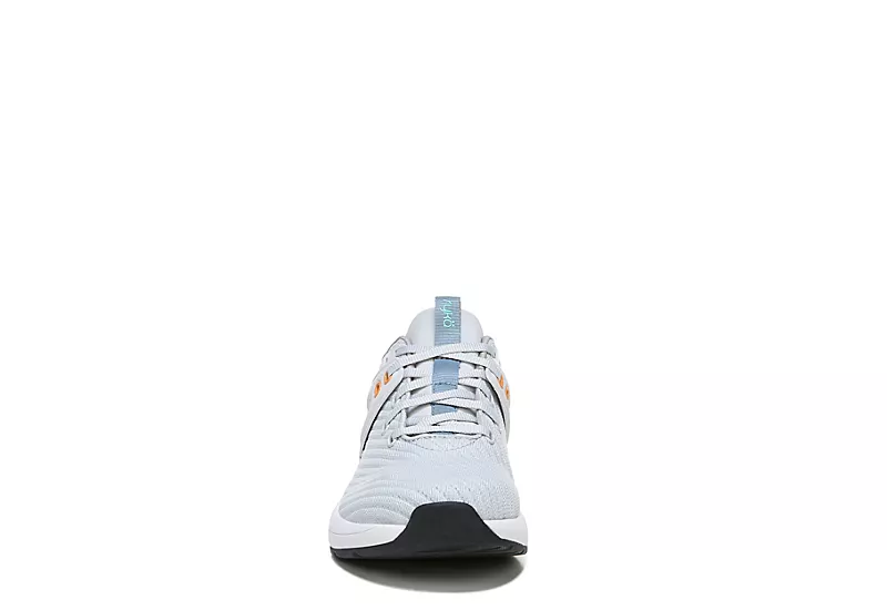 Hit the gym in the sleek Pinnacle XT women’s training shoe from Ryka. Designed for high-intensity workouts, this trainer features a breathable mesh upper with a padded heel collar for added comfort, lace-up closure, and front and back pull tabs for an easy, secure fit. An anatomical insole and lightweight EVA midsole support and cushion your feet, while the durable rubber outsole with Pivot Point offers excellent traction and helps with smooth and easy turns.Â